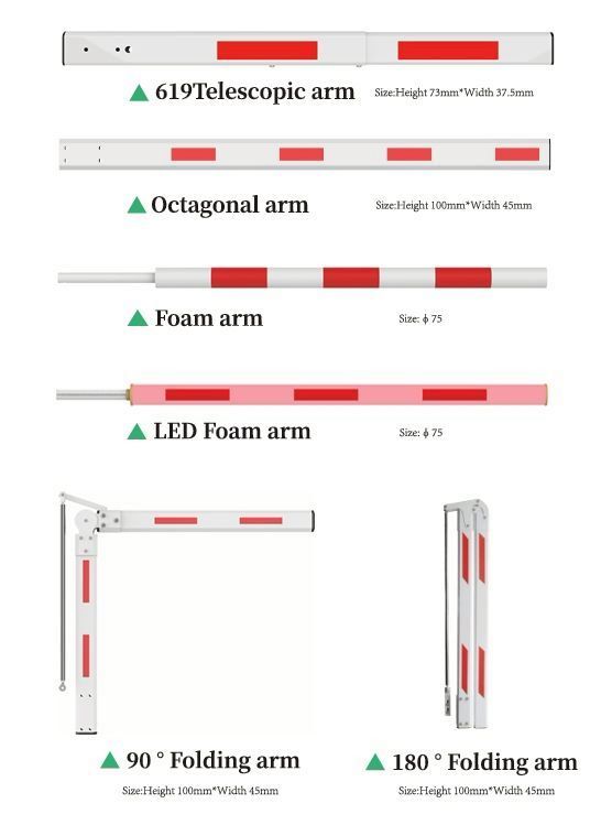 ลักษณะ: แขนกั้นที่สามารถพับได้ 90 องศา หรือ 180 องศา เมื่อยกขึ้น